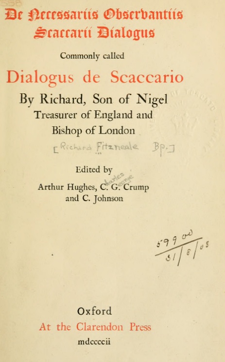 Amt, Emilie (2007). Dialogus de Scaccario: The Dialogue of the Exchequer. Oxford. p. xxvii.