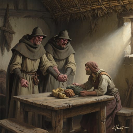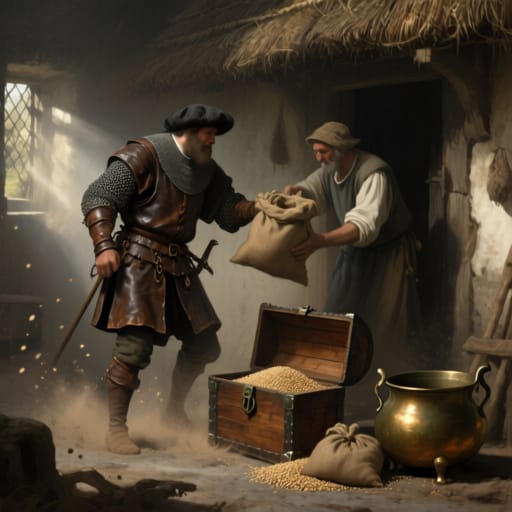 Chattels were to be taken in a prescribed order, with plough oxen being seized last, enough food being left to enable the debtor and his family to keep bodies and souls together, and a knight being allowed to keep the horse on which he normally rode; if the debtor’s personal goods were insufficient to pay the debt then those of his villeins could be taken as well, albeit subject to the same provisos, but when all these processes had been gone through, then except when the money was owed for scutage, `whether the required sum has been raised or not, our law (lex nostra) requires the sellers to desist