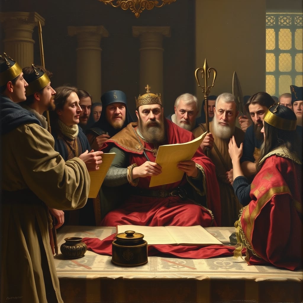 By 1215, widespread dissatisfaction among the barons—stemming from financial extortion and violations of traditional rights—led to armed resistance against the crown.